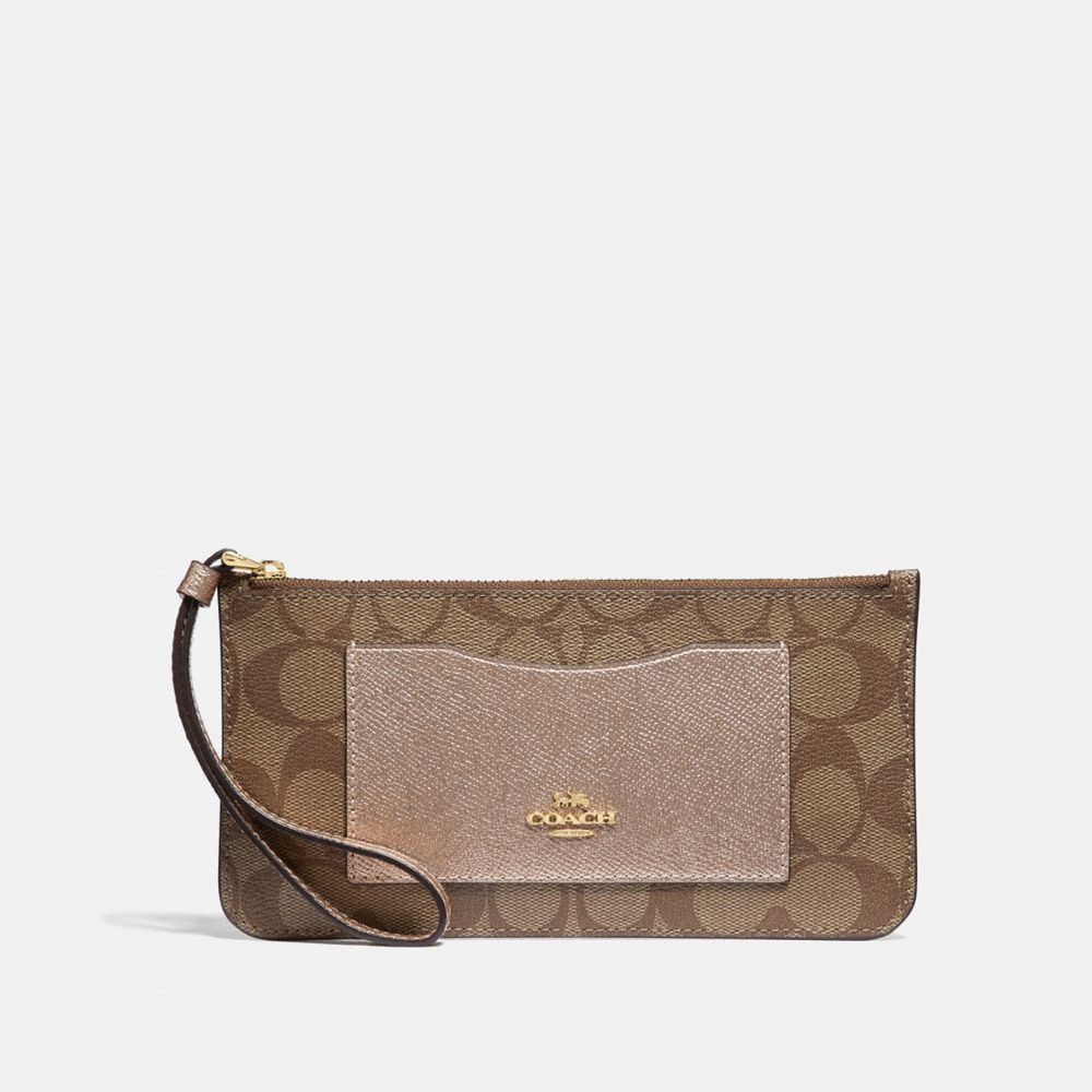 COACH F37565 - ZIP TOP WALLET IN SIGNATURE CANVAS - KHAKI/ROSE-GOLD/LIGHT-GOLD - DEALS