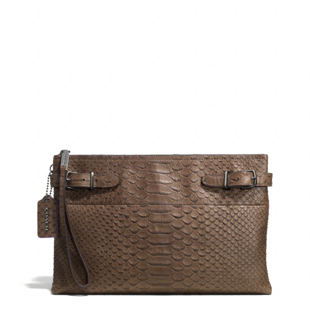 COACH F52113 - LARGE BOROUGH CLUTCH IN PYTHON EMBOSSED LEATHER - BLACK-ANTIQUE-NICKEL/TAUPE-GREY - HANDBAGS