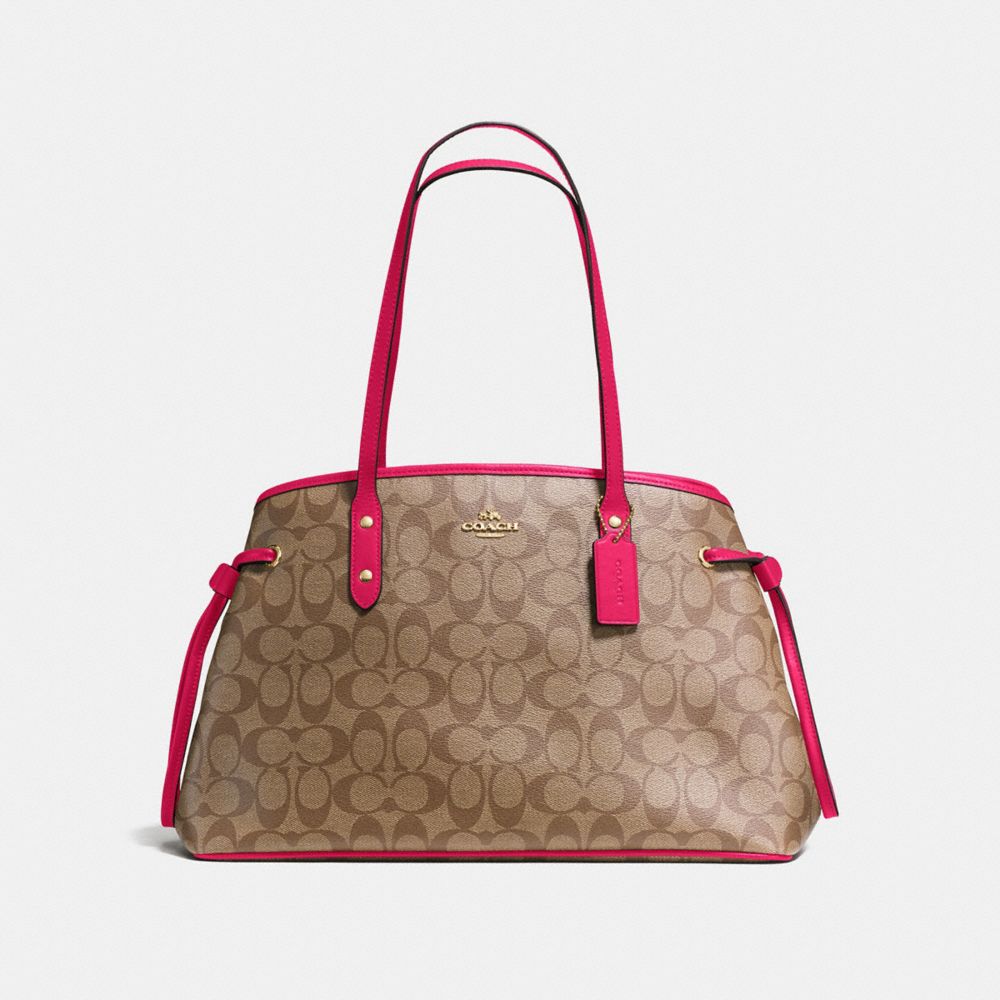 COACH F57842 - DRAWSTRING CARRYALL IN SIGNATURE - IMITATION-GOLD/KHAKI-BRIGHT-PINK - HANDBAGS