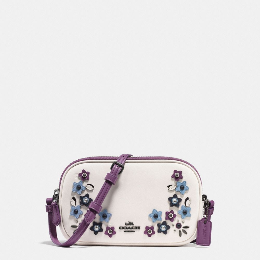COACH F59557 - CROSSBODY POUCH IN NATURAL REFINED LEATHER WITH FLORAL APPLIQUE - BLACK-ANTIQUE-NICKEL/CHALK-MULTI - HANDBAGS
