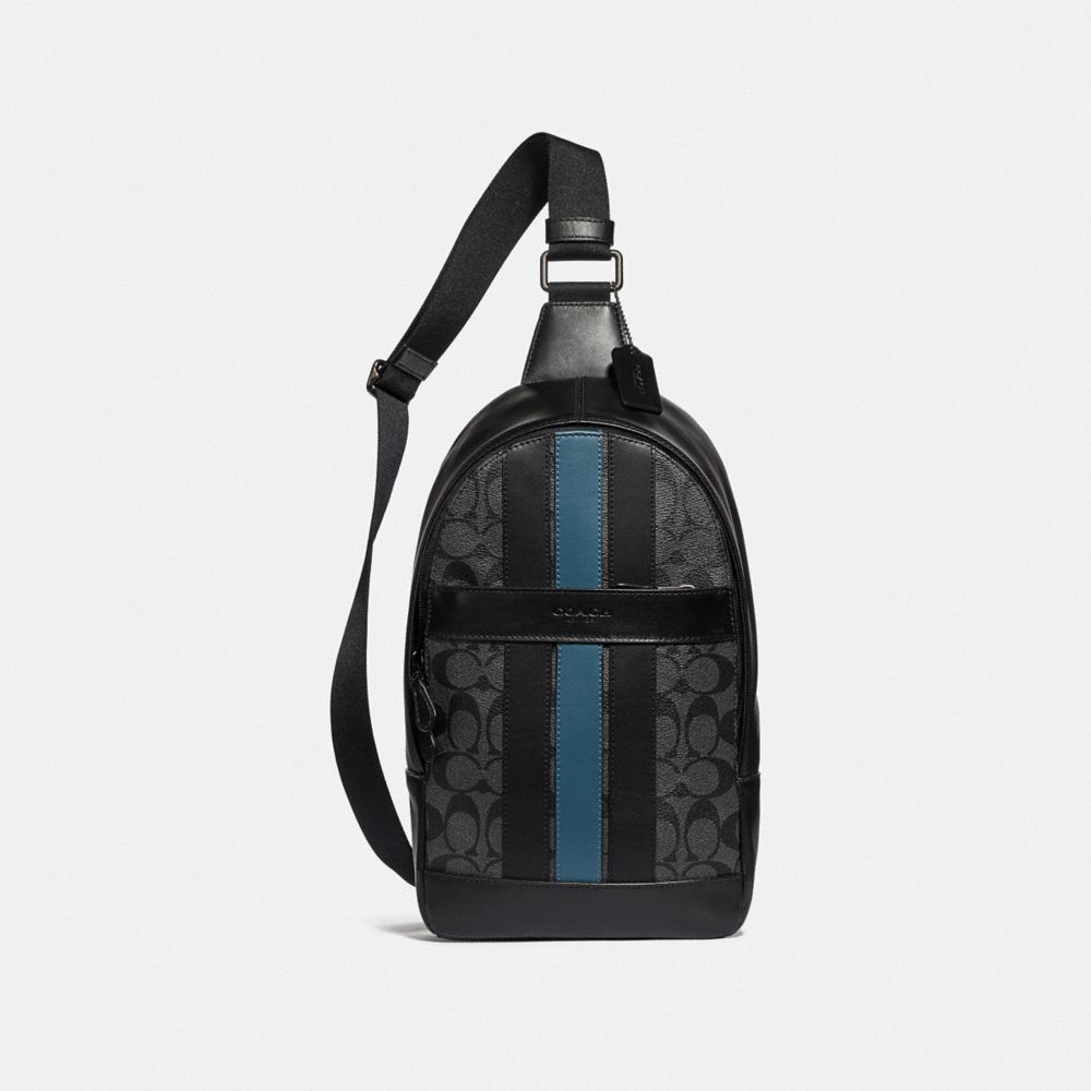 1. COACH F26067 - CHARLES PACK IN SIGNATURE CANVAS WITH VARSITY STRIPE - BLACK BLACK MINERAL/BLACK ANTIQUE NICKEL