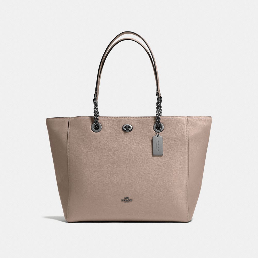 COACH F56830 - TURNLOCK CHAIN TOTE - DARK GUNMETAL/STONE (click the link before for more detail)