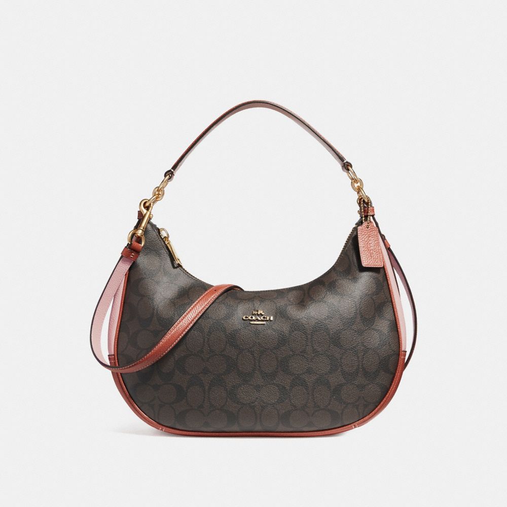COACH F25897 - EAST/WEST HARLEY HOBO IN COLORBLOCK SIGNATURE CANVAS - BROWN/BLUSH TERRACOTTA/LIGHT GOLD (click the link before for more detail)