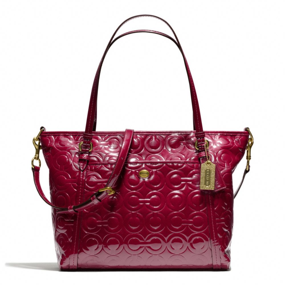 COACH F26038 - PEYTON OP ART EMBOSSED PATENT POCKET TOTE - BRASS/MERLOT (click the link before for more detail)