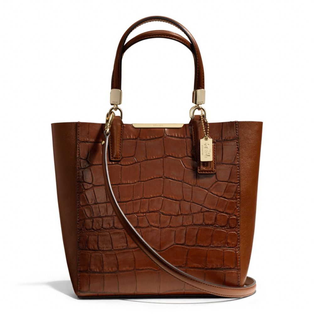 COACH F28291 MADISON CROC EMBOSSED MINI NORTH/SOUTH BONDED TOTE LIGHT-GOLD/COGNAC