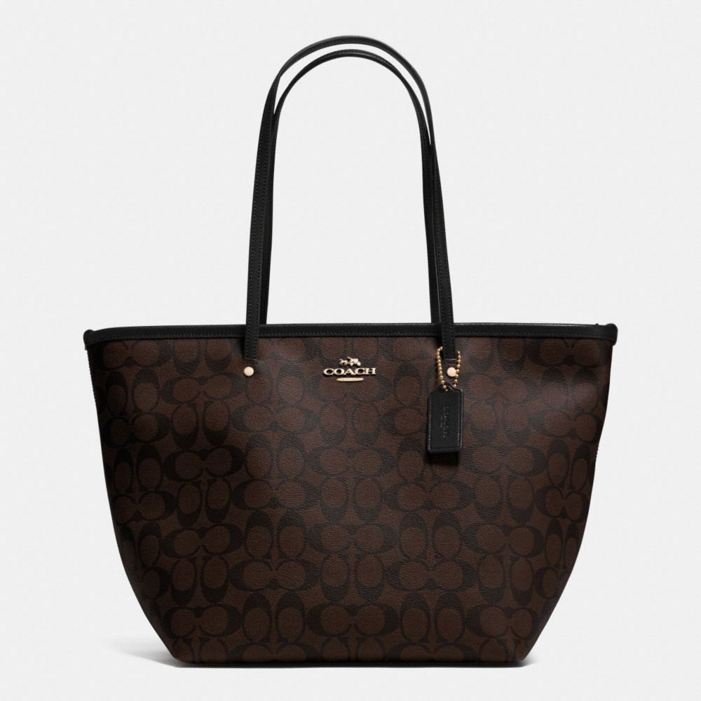 COACH F34104 - SIGNATURE STREET ZIP TOTE - LIGHT-GOLD/BROWN/BLACK - HANDBAGS