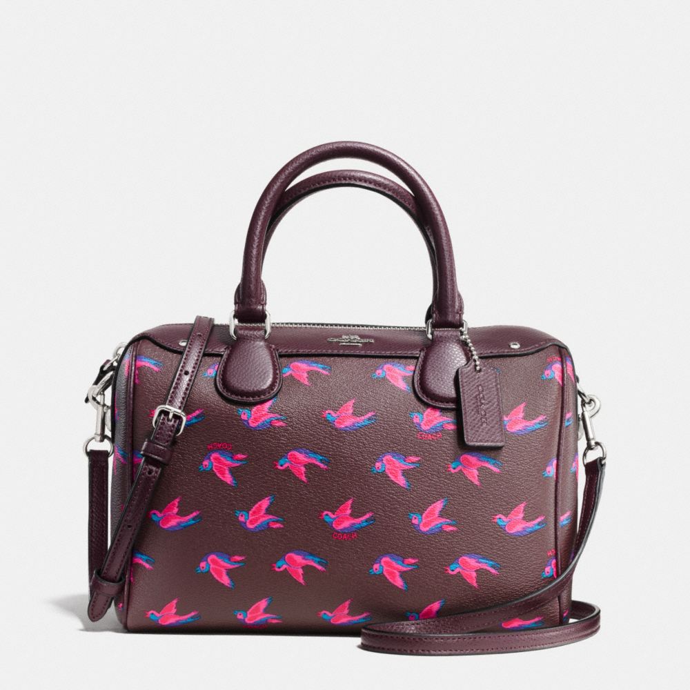 COACH F57274 - MINI BENNETT SATCHEL IN HAPPY BIRD PRINT COATED CANVAS - SILVER/BURGUNDY-MULTI-OXBLOOD-1 - HANDBAGS