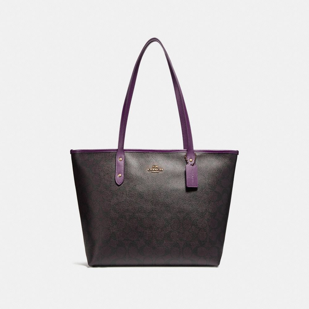 COACH F58292 - CITY ZIP TOTE - SILVER/BROWN - HANDBAGS