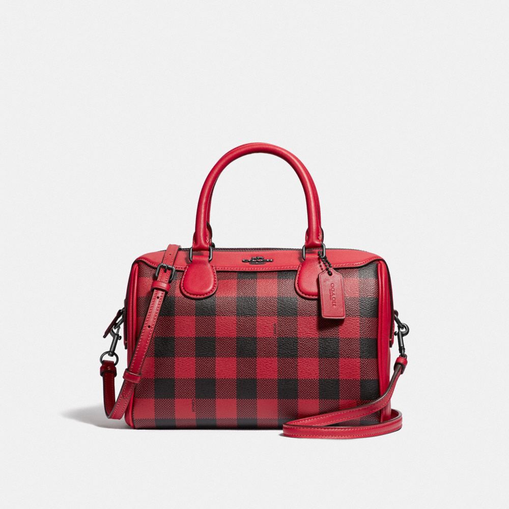 1. COACH F38948 - MINI BENNETT SATCHEL WITH GINGHAM PRINT - RUBY MULTI/BLACK ANTIQUE NICKEL